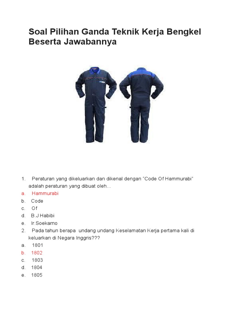 Soal Pilihan Ganda Teknik Kerja Bengkel Beserta Jawabannya