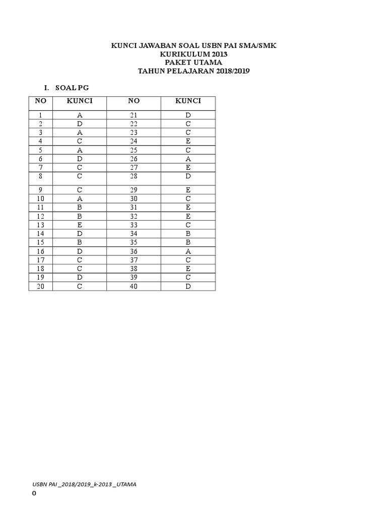 01 Kunci Utama Soal Usbn Pai K13 Doc