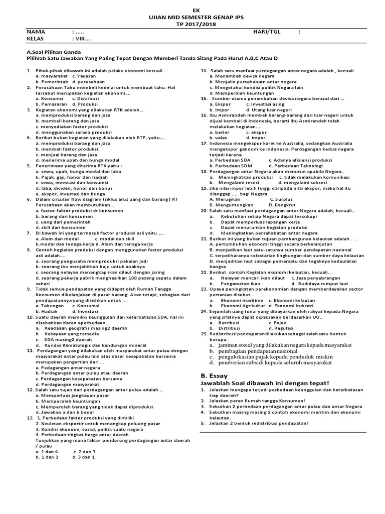 Kumpulan Soal Pts Ips Kelas 8 Semester Genap Kurikulum 2013 Mgmp Ips Indramayu