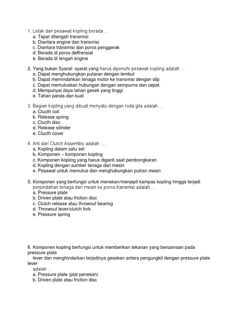 Soal Pilihan Ganda Sistem Kopling Teknik Otomotif Com