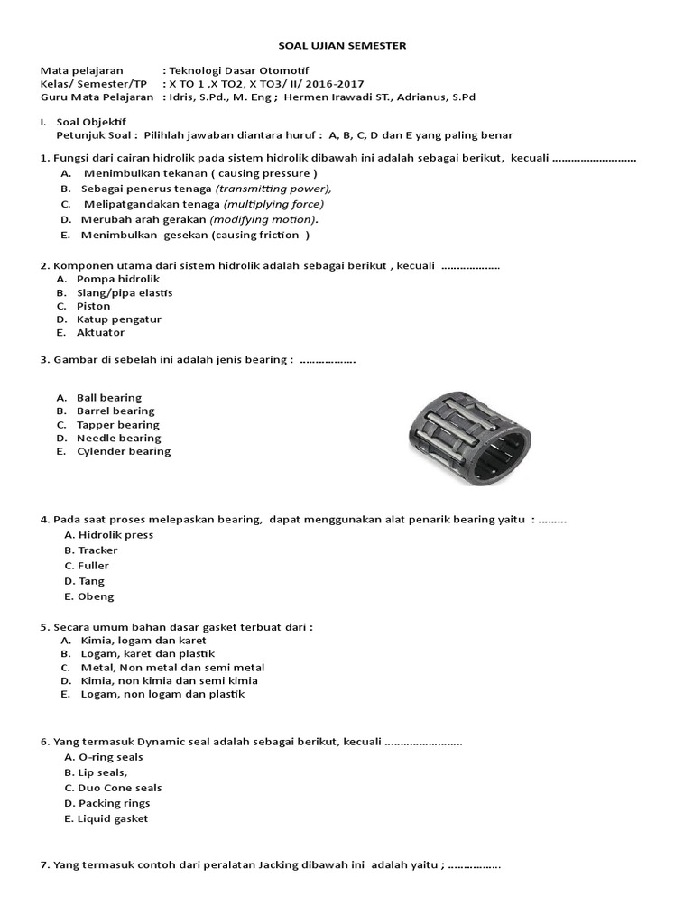 Soal teknologi dasar otomoti doc. Contoh Soal Teknologi Dasar Otomotif Docx Cuitan Dokter. Essaypilihan ganda 42 JP. Pengembangan dan penggunaan teknologi dalam kegiatan belajar harus selaras dan tidak merusak dan mencemari lingkungan alam dan manusia 21 Menunjukkan sikap peduli terhadap lingkungan melalui kegiatan yang berhubungan dengan dasar permesinan proses pembentukan logam dan mesin konversi energy emisi gas buang oli air pendingin dan limbah.