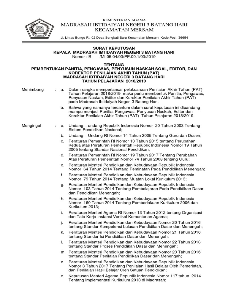 Surat keputusan penyusun soal pat mts doc. Yaya s a n budi mulia nurinnuha temulus smp pesantren temulus jl. Silakan dapatkan sk ppdb terbaru lengkap dengan contoh format ppdb paud sd smp sma smk dan surat keputusan. Format SK ini saya bagikan hanya sekedar referensi yang mungkin sesuai dengan harapan anda.