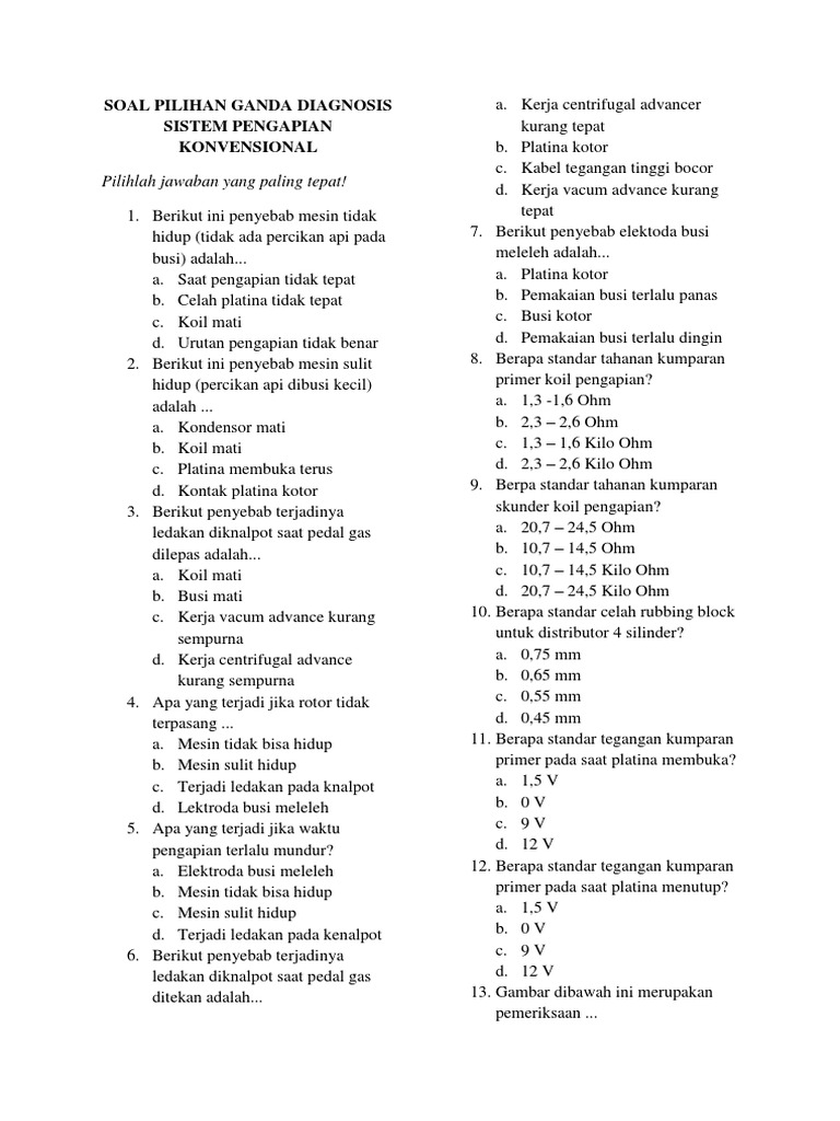 Contoh Soal Pilihan Ganda Sistem Pengapian Dan Jawabannya Contoh Soal Terbaru