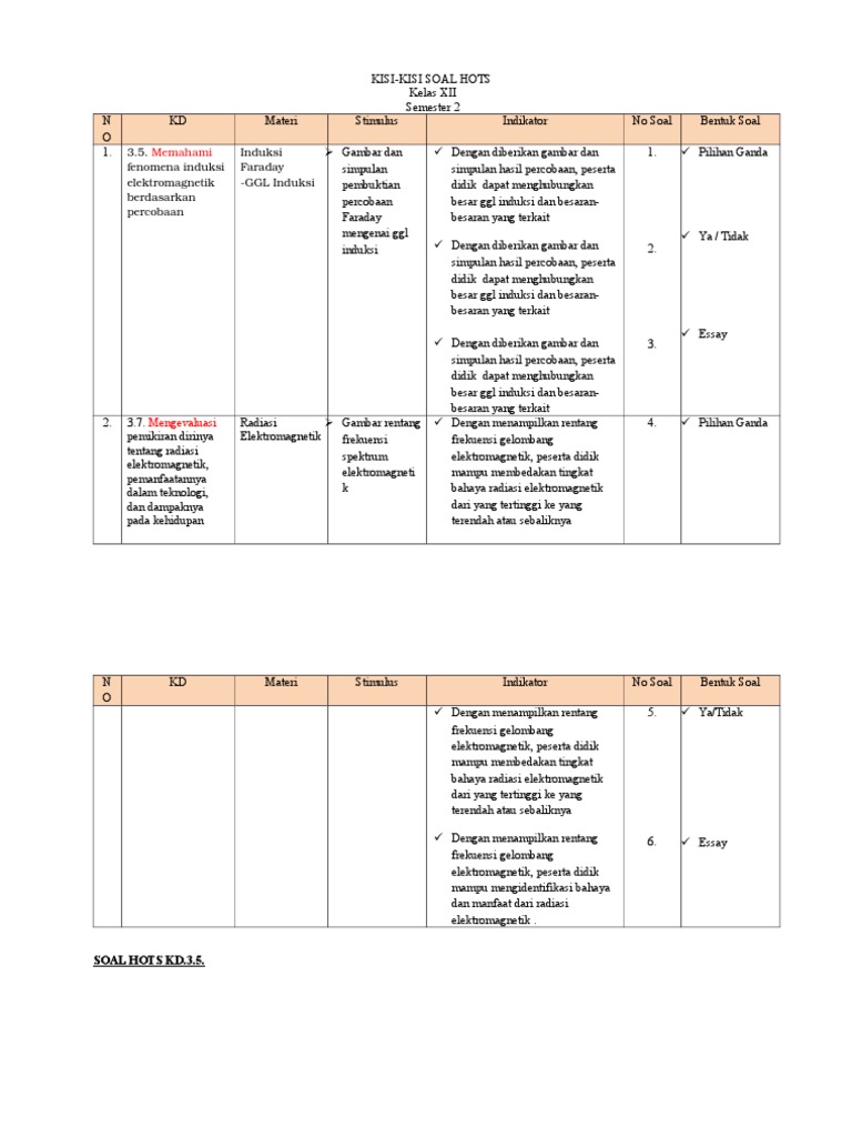 Contoh Kisi Kisi Soal Hots Fisika Docx