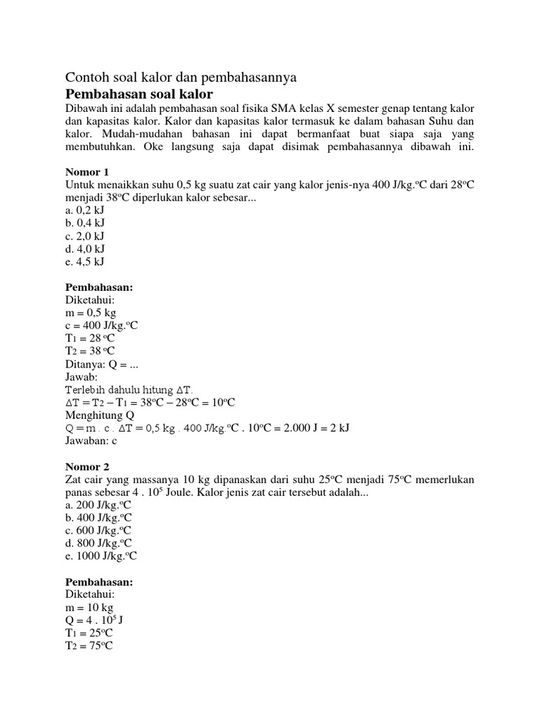 Doc Contoh Soal Suhu Dan Kalor Beserta Jawaban Nya Gisa Sakasirana Academia Edu
