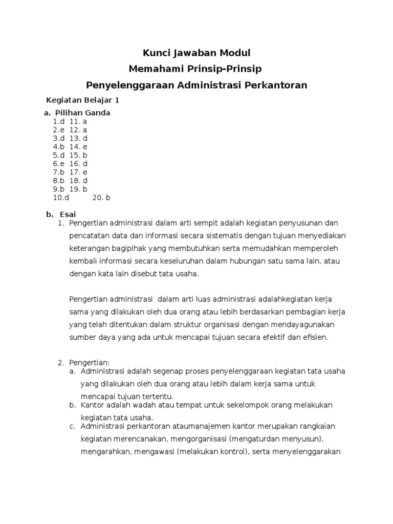 Soal Pilihan Ganda Pengantar Administrasi Perkantoran Dan Kunci Jawaban