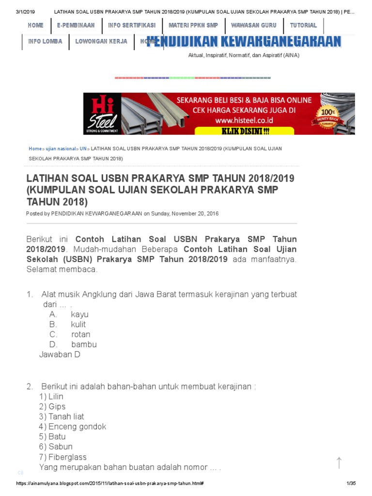 Contoh Soal Usbn Prakarya Smp Guru Galeri