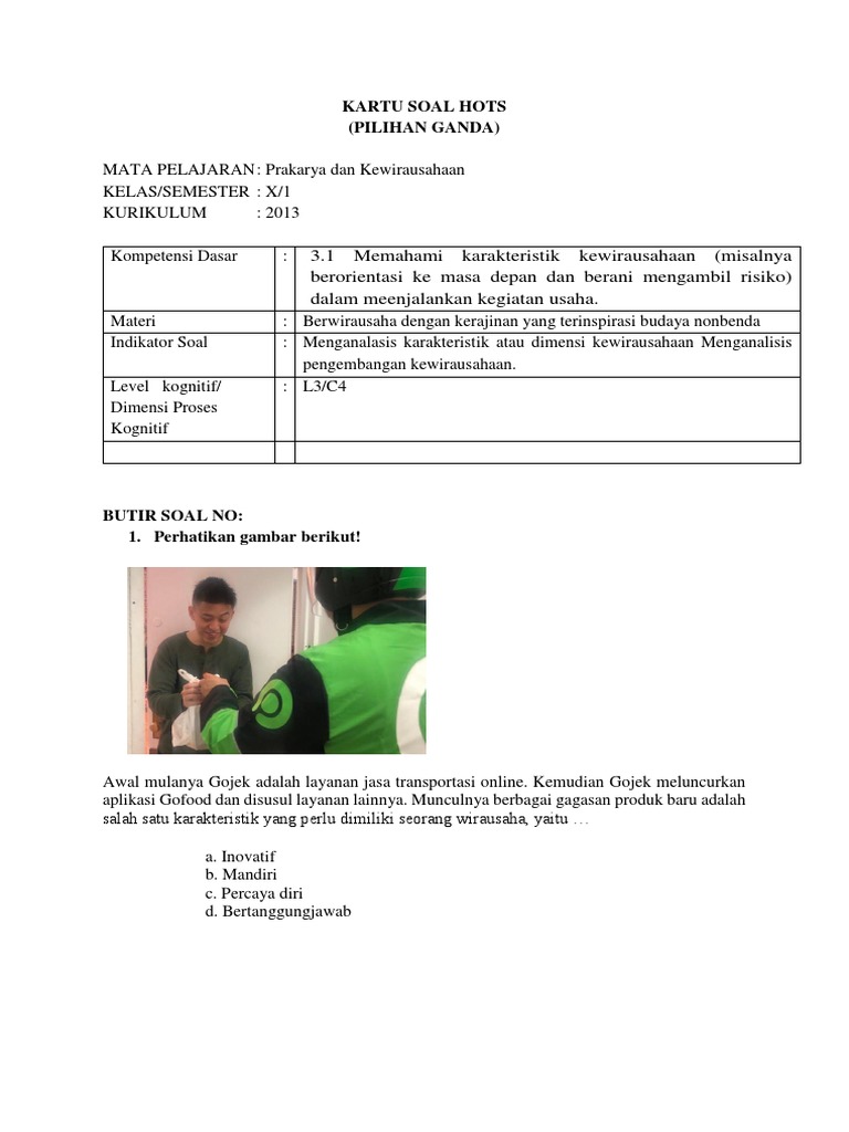 Keterampilan berpikir tingkat tinggi yaitu keterampilan berpikir yang tidak sekadar mengingat remembering memahami understanding atau menerapkan applying. Contoh soal hots c3 kewirausahaan. Yang masing - masing soalnya sudah tersedia kunci jawaban kecuali untuk bagian uraian.