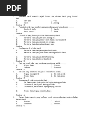 Soal Pilihan Ganda Sistem Peredaran Darah Manusia