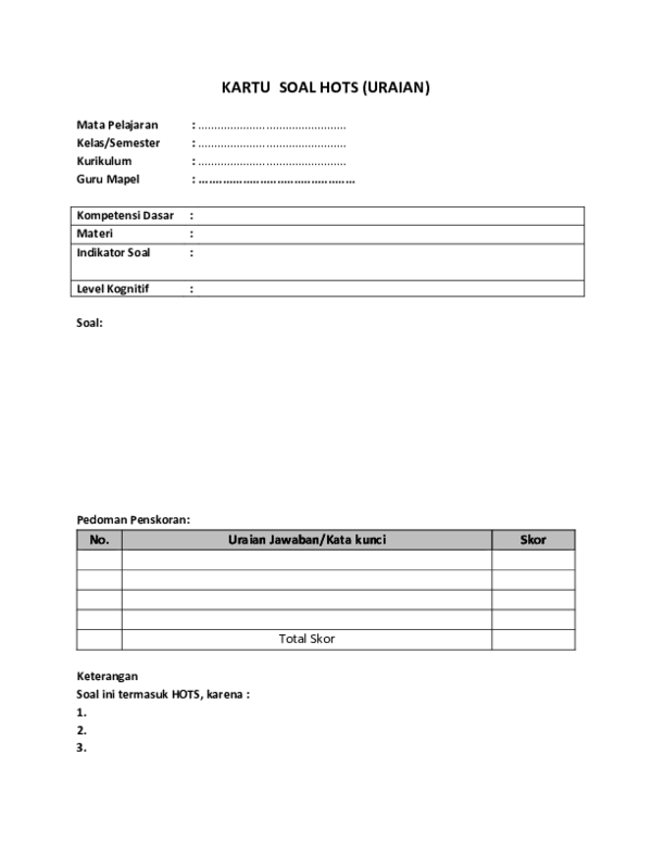 Dan sebenarnya apa yang dilakukan Zenius selama ini nyambung banget dengan soal HOTS. Soal HOTS pertama kali mulai dibicarakan ketika Kemendikbud mengeluarkan kebijakan untuk memasukkan soal HOTS di Ujian Nasional 2018. Academiaedu is a platform for academics to share research papers.