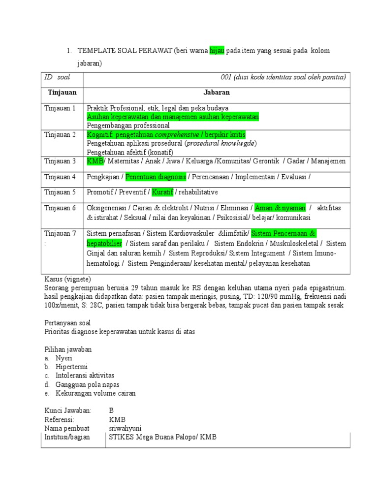 Kelompok 2 Annyndhyta Bella Choirunisa Suci Rumandani 16008 Devi Yuliani Deysa Meidiana Indaah AKADEMI KEPERAWATAN PELNI JAKARTA Jl. Struktur soal terdiri atas. Vignet atau kasus dilanjutkan dengan pertanyaan.