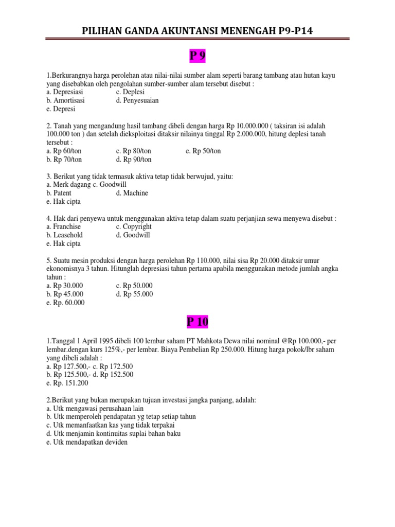 Pilihan Ganda Ak Menengah P9 P14 Docx