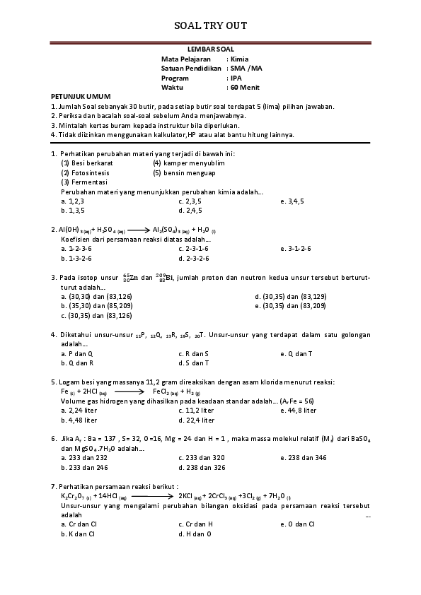Doc Soal Try Out Kimia Ikhfa Hakiki Academia Edu