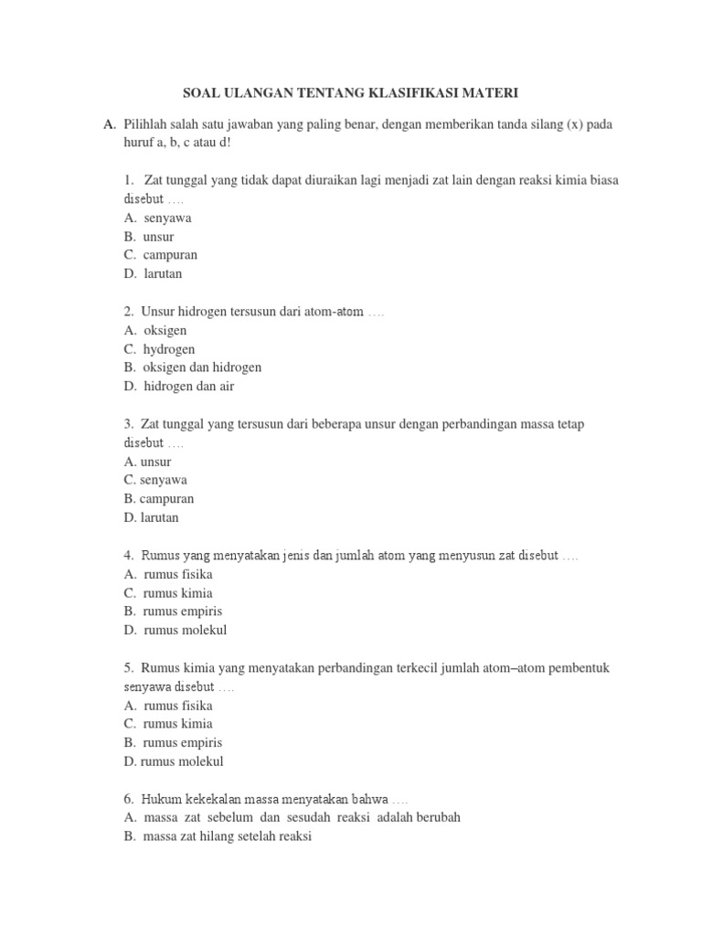 Doc Soal Pilihan Ganda Kimia Kelas X Semester 1 2 Irfan Kamal Firdaus Academia Edu