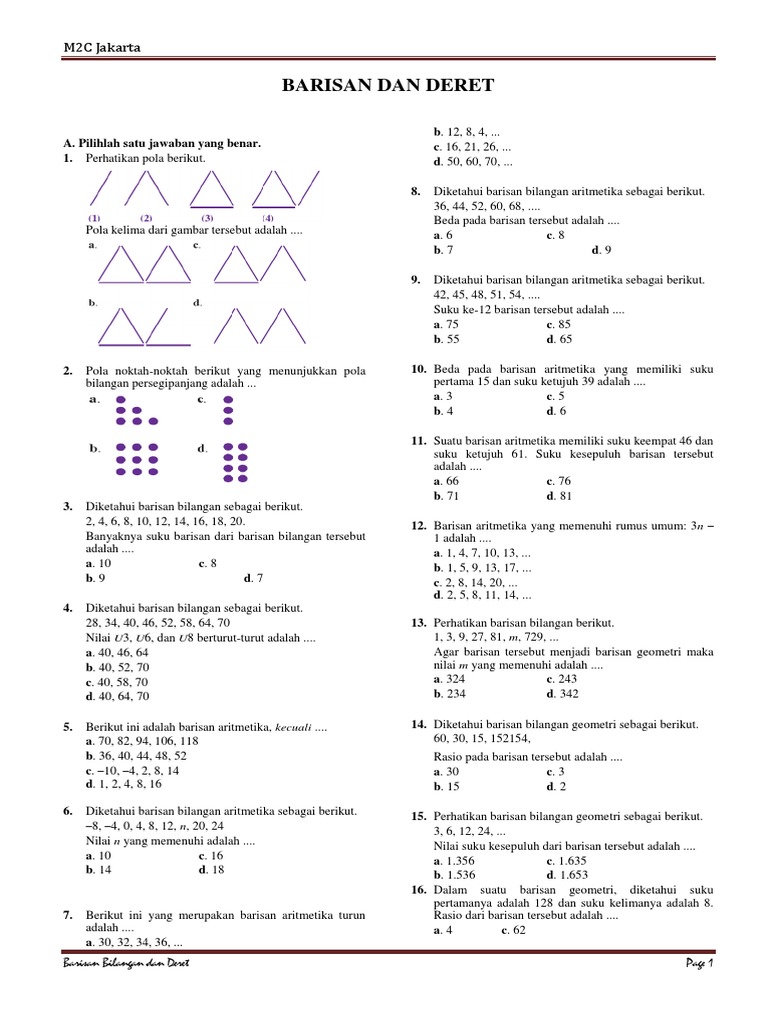 Pola Bilangan Barisan Dan Deret Vii Smp Soal