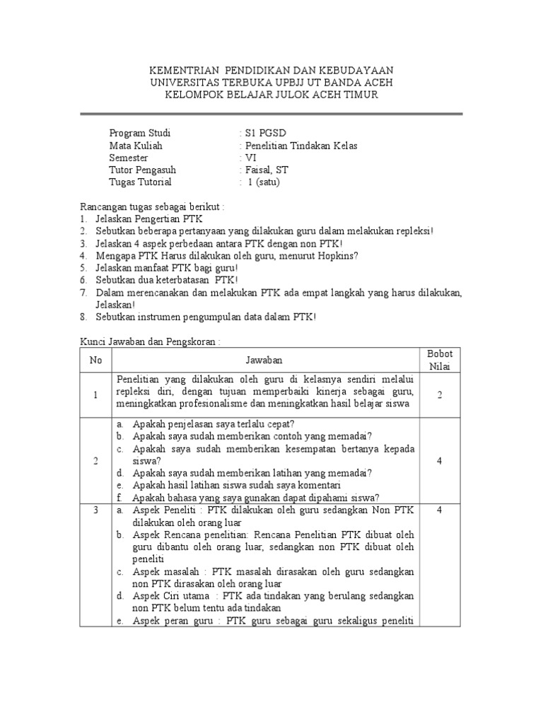 Contoh Soal Tttm3 Ut Pdgk4008
