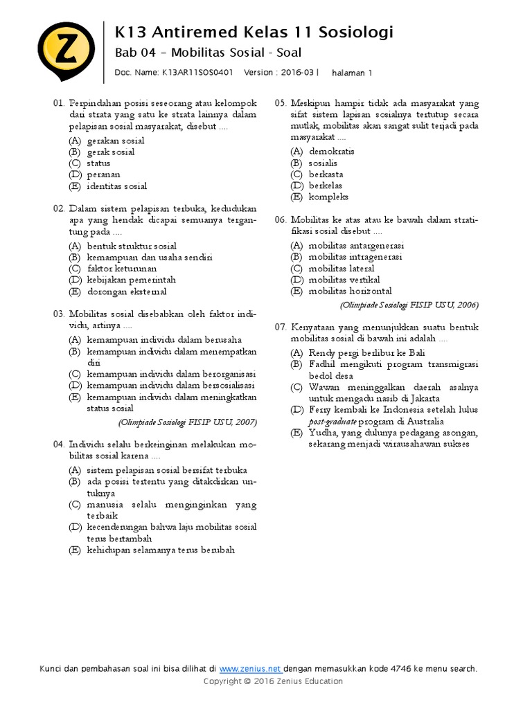 Contoh soal 5 UN 2018. Silahkan download soal di atas melalui link berikut. Demikian soal sosiologi tentang pengaruh stratifikasi sosial dan diferensiasi sosial.