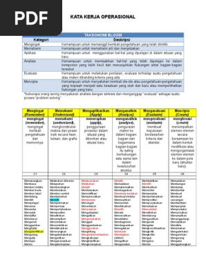 Kata kerja operasional untuk soal hots.pdf. KATA KERJA OPERASIONAL KKO EDISI REVISI TEORI BLOOM RANAH KOGNITIF MENGINGAT C1 Mengetahui. Indikator pencapaian kompetensi terdapat pada RPP yang merupakan skenario proses pembelajaran pada siswa. Penulisan indikator yang lengkap mencakup A audience peserta didik.