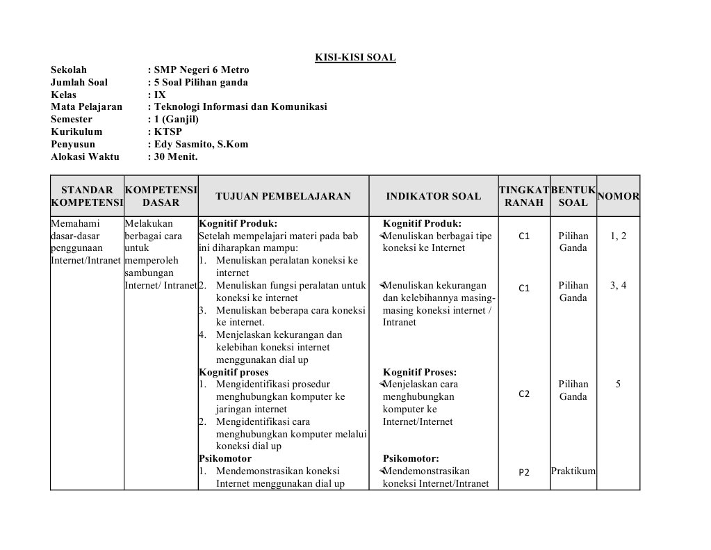 5b Biologi Mata Kuliah. 20190328 Penyusunan Kisi-kisi Soalpptx - Penyusunan Kisikisi Soal Zakiyah Bahanan16184202016 Muhammad Lutfi Aminullah16184202017 Ayatush Syifatika Ihya Pengertian Kisi-kisi Kisi-kisi adalah suatu format atau matriks yang memuat kriteria yang dapat dijadikan pedoman untuk menulis soal atau merakit soal menjadi suatu tes atau evaluasi. 20201019 Demikianlah info terbaru terkait kurikulum 2013 k13 dengan judul contoh soal uraian kisi kartu dan soal pilihan ganda pembuatan soal k13 SDMI.