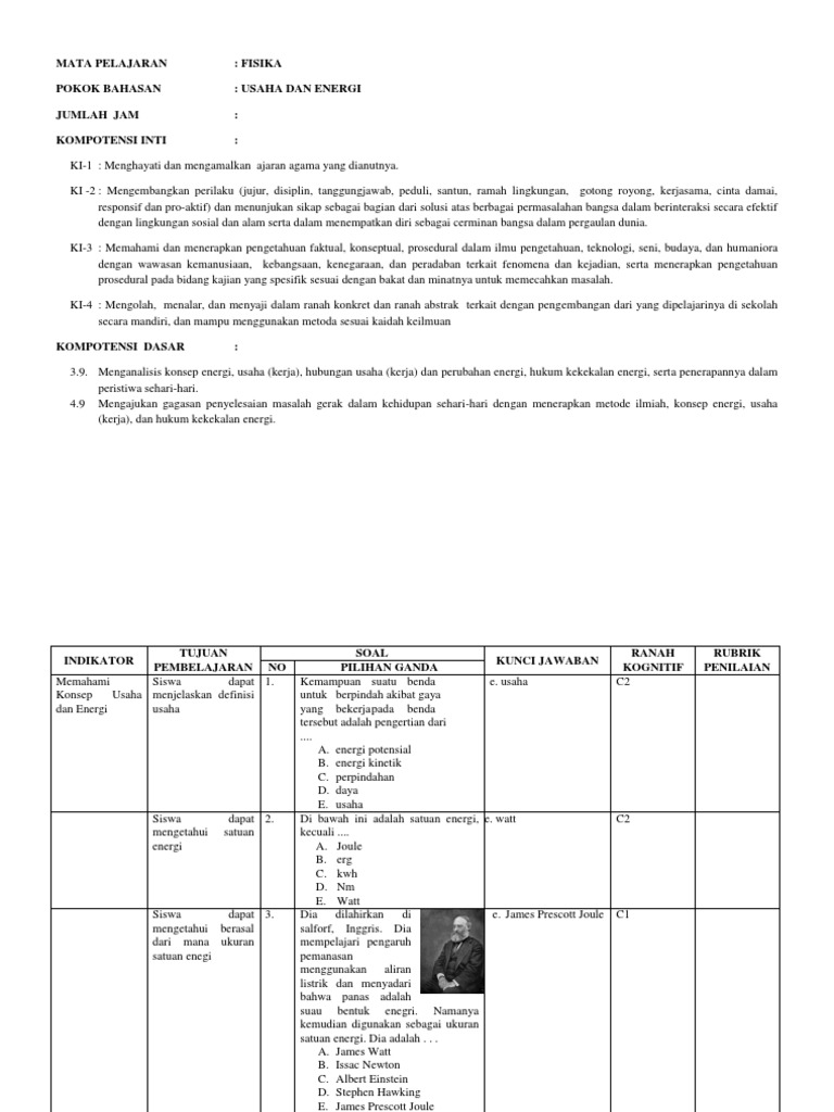Soal Usaha Dan Energi Kisi Kisi Docx