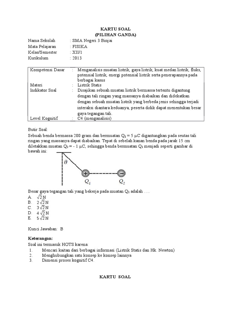 Kartu Soal Hots Fisika Listrik Statis Dan Dinamika Rotasi