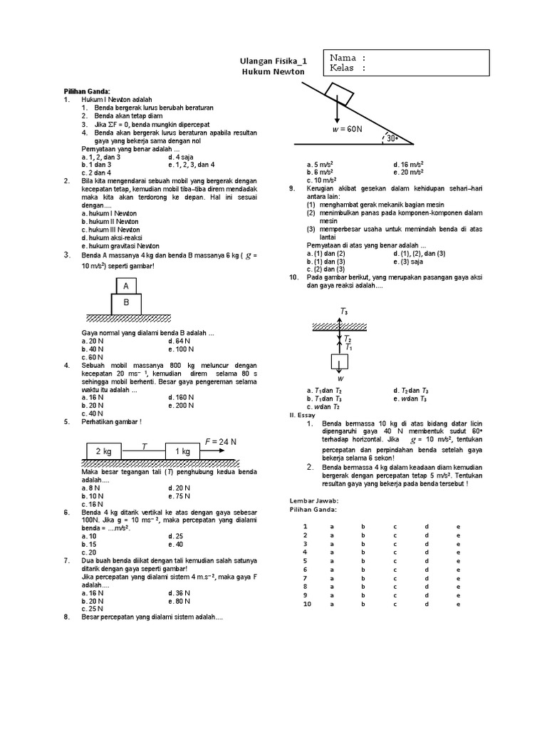 Contoh Soal Pilihan Ganda Hukum Newton Dan Pembahasannya Cute766