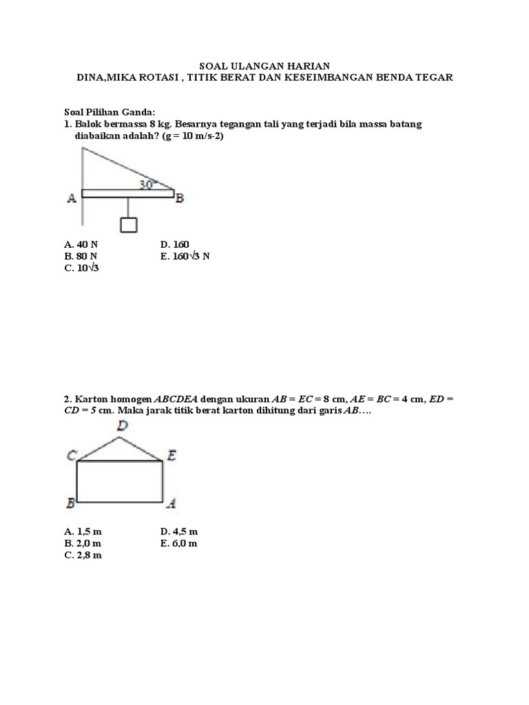 Soal dan pembahasan keseimbangan benda tegar harry wibowo. Soal pilihan ganda dinamika rotasi dan kesetimbangan benda tegar doc. Untuk cabang kinematika dan dinamika sudah dipelajari dikelas satu dan dua.