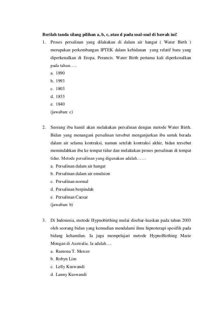 Contoh Soal Uji Kompetensi Bidan Dan Kunci Jawaban Pdf