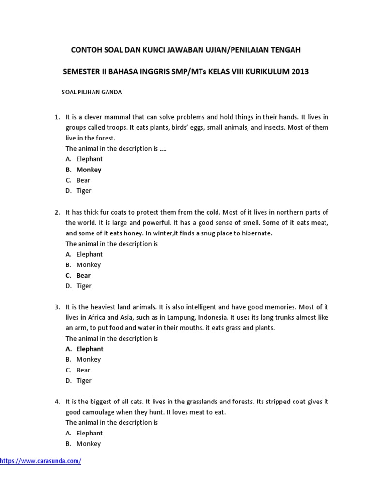 Soal Uts2 B Inggris 8 K13 Bears Elephant