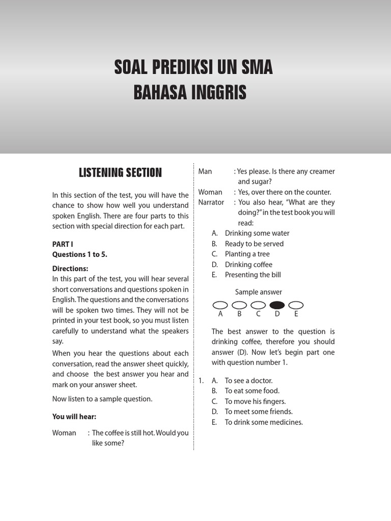 Selain itu kamu juga bisa mencoba mengerjakan soal-soal prediksi UN Bahasa Indonesia yang telah disesuaikan dengan SKL pemerintah sebagai bahan latihan soal untuk mempersiapkan diri menghadapi Ujian Nasional tingkat SMA. Latihan Soal UN Geografi Kelas XII SMA 47042 X. You will hear the conversations TWICE.