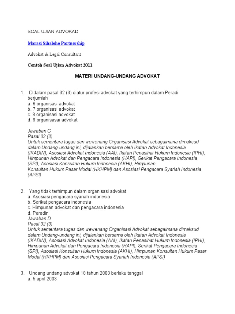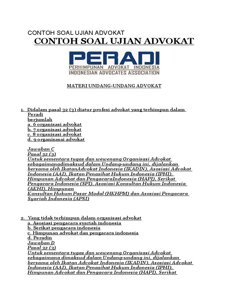 Contoh Soal Ujian Advokat Peradi Pdf Barisan Contoh