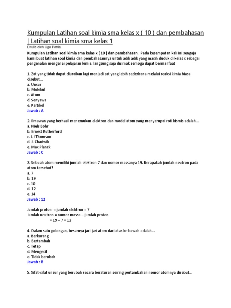 Kumpulan Latihan Soal Kimia Sma Kelas X Docx