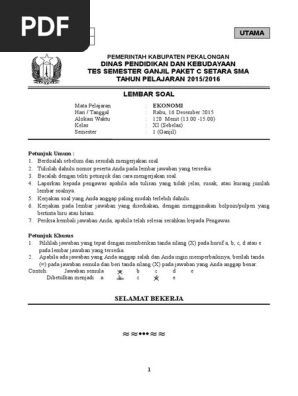 Soal Ulangan Ekonomi Kelas 11 Semester 1 Helmi Kediris