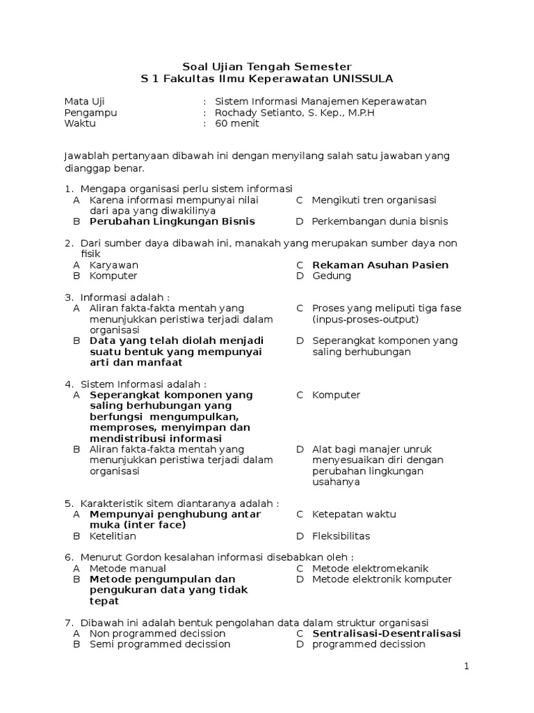 SOAL UJIAN TENGAH SEMESTER UTS MATA KULIAH SISTEM INFORMASI KESEHATAN dr H Hendi Suhendro MSc 1. 20200306 Pada artikel yang lalu kami telah berbagi soal ujian ut manajemen semester 3 yaitu soal ut manajemen semester 3 yaitu soal ujian ut manajemen. YAYASAN SASMITA JAYA GROUP UNIVERSITAS PAMULANG SK MENDIKNAS NO136D02001 FAKULTAS EKONOMI PROGRAM.