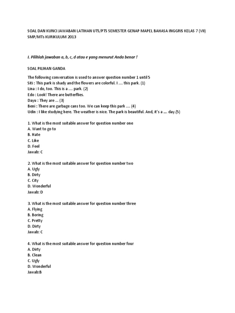 Soal Dan Kunci Jawaban Latihan Uts Nature