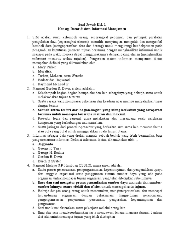 Sebuah sistem informasi manajemen mengandung elemen. Sistem informasi manajemen kumpulan soal dan jawaban bab i 1. Jika itu saudarari yang butuhkan maka tidak salah membuka halaman ini.