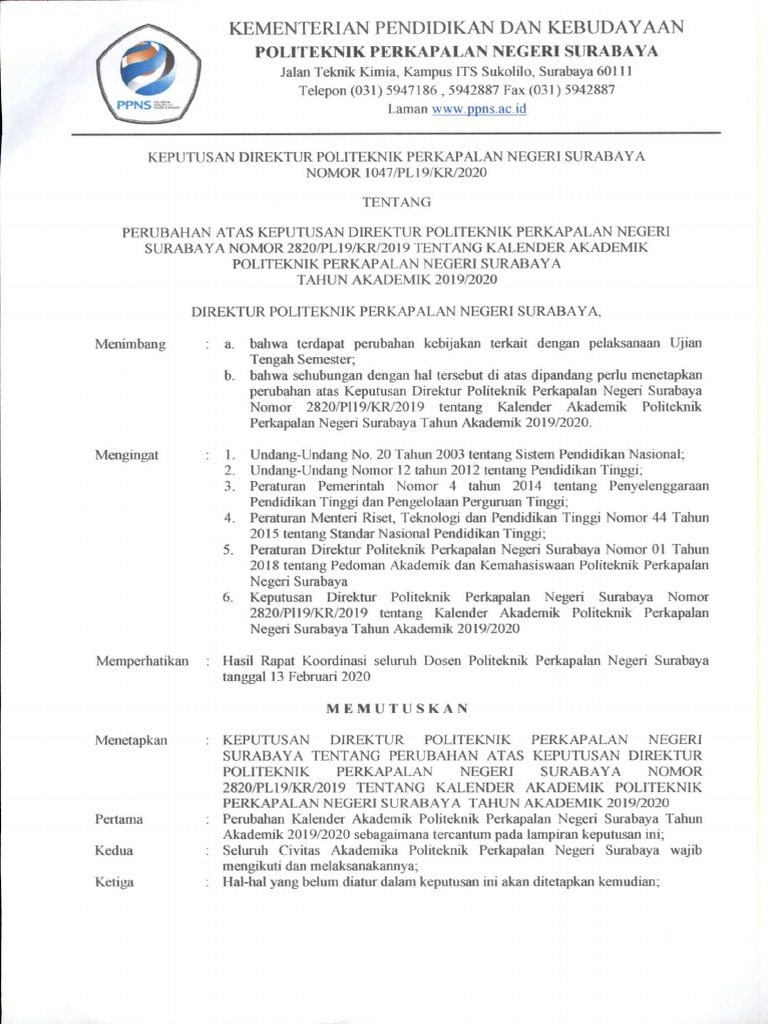 Perubahan Atas Keputusan Direktur Ppns Tentang Kalender Akademik