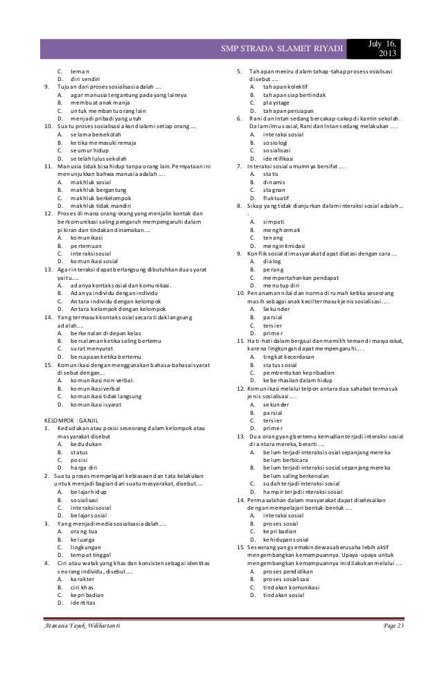 Sehingga ilmu yang di pelajari juga menjelaskan tentang lingkungan sosial dalam kehidupan sehari-hari. Soal IPS Terpadu Kelas 7 SMPMTs. Bila adik-adik rajin membaca dan banyak melakukan latihan-latihan soal maka wawasan adik-adik akan bertambahnya.